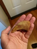 An authentic Carcharodontosaurus Saharicus dinosaur fossil hand claw, found in Morocco.