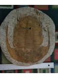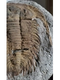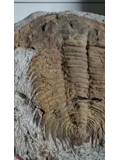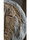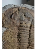 A huge trilobite fossil, Rare Paradoxides from the Cambrian of Morocco. Has some of the typical Moroccan restoration work minorly done as well as some break repair, an old tuscon show purchase before the trilobite faking industry got really out of hand on these larger trilobites. This is a great specimen compared to all the fakes ones that are currently available, very rarely are authentic ones appearing these days as most seem to have found permanent homes or are priced out of affordability. The resto work includes the left head spine as well as a few of body spines on the left side and on the bottom, as well as a patch it seems on the brim of the head on the right side.