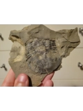 This is a partial very rare, unprepared Isoteloides trilobite from the Carolinites nevadensis Zone in the Fillmore Formation in Utah.The partial is 2.5" long but missing it's head or it would have been close to 4" long. If it was whole would be valued close to 4 figures, this will be the only bargain specimen you will see available.
