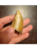 A fat tooth from the tyrant dinosaur king of the cretaceous tyrannosaurus rex! With a stained bone color almost as if it was plucked fresh out of the Trex's mouth. This tooth tip was found in the hell creek formation of Montana. Has some gap fill in some areas but not really noticeable overall a stunning tooth on display!