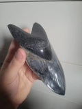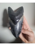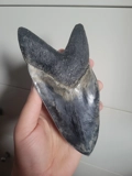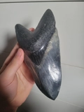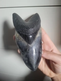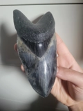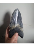 Here we have a wicked pathological dagger of a fossil megalodon shark tooth from Indonesia at a huge size of 6 1/2inches! Pathological means the tooth has a rare morphological deformity that happens in every 1 of 100s of 1000s of teeth in a shark making these kind of teeth much rarer than normal. While the blade is a quality super sharp dagger with a killer tip. This tooth has work done on the chevron and root making it an affordable opportunity to own a tooth that is both monstrous in size being well over the 6 inch mark and in addition has a rare deformity. This tooth would've otherwise been worth around $2,000+ so here is great chance to snag one for your collection for those looking for a bargain.