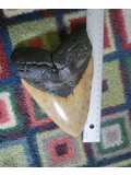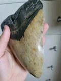 As with the few 7 inch teeth ever offered publicly this is a restored tooth. The restoration work was done by Christian Hunt the best in the world in megalodon repair for 100% natural accuracy. This tooth was found broken measuring a staggering 5.5 inches! missing about 1.5 inches of the tip which was restored back on. Work was less than half and done on the missing 1.5 inches of the tip, most of the enamel on the front, and on the serrations. All natural 7 inch megalodon have never been offered on the market, out the few (accurately restored and not extended) restored 7 inch teeth out there this stands out as of one the best and most accurately done in the world. The last picture shows this tooth compared to a research quality replica of the current record holder for the world's largest megalodon tooth on display at the blackhills institute, if not for the wierd root it has, the tooth currently listed for sale would have been longer, but the blade is still larger than the world record holder from Peru! (The replica is not for sale or included in this listing).