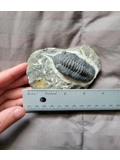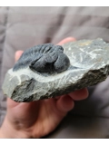 This is a great bargain specimen of Morocconites trilobite from the devonian aged rock formations of Morocco. This specimen has been hand selected and personally examined to be an authentic specimen. So no worry of the specimen being a fake or cast that many morrocan trilobites are notoriously known to be. Due to the flaws such as some damage near one of the eyes this specimen has been priced cheaper than others. The limestone around it has been removed and the specimen prepared so that it looks like it is about to crawl off of the rock.