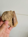 This is a huge mosasaurus hoffimani tooth in its natural matrix from one of the larger mosasaur species found in Ouled Abdoun Basin in Morocco, Upper Cretaceous 66 million years old. Hoffmani was the biggest and baddest species of mosasaur around.