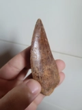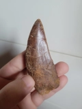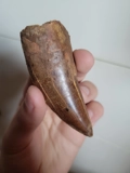 This is a large Carcharodontosaurus tooth from the Kem Kem Basin in Morocco and is Late Cretaceous in age, approximately 95 million years old. This tooth has a glue repair on the tip and a small amount of work done to it to keep it together but is not a composition. This keeps it very cheap for the size. Please check photos for size and condition.