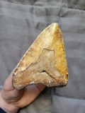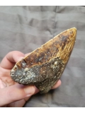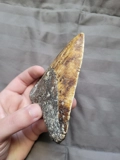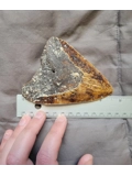 Here we have a rare and actually serrated megalodon tooth from New Caledonia. These unique colored teeth come from the South Pacific Ocean 800 miles east of Australia and they are dredged from around 1000 feet deep. This location is now closed and no longer collected. Typically the majority of these teeth have been heavily polished and never have the serrations but this tooth does. No restoration and check photos for approximate measurements.