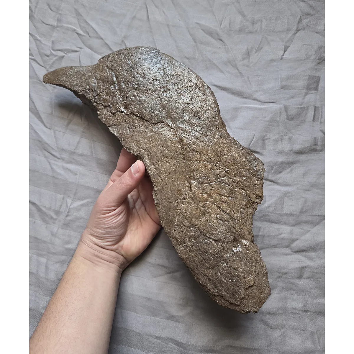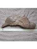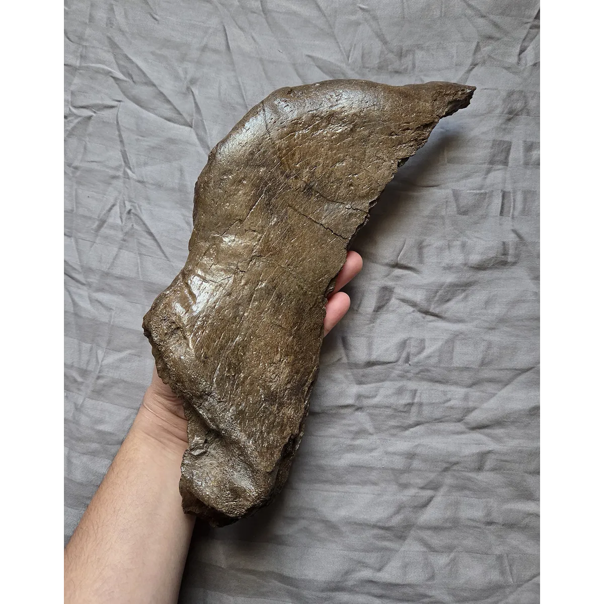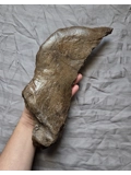 Here is a beautiful choclate museum quality example of a chunk of fossilized frill bone edge from the skull of a Triceratops from the Cretaceous aged Hell Creek Formation of Montana. One thing I personally love about this piece vs the majority of frill pieces I've seen offered is it such a great and detailed chunk of edge that it makes it very easy to imagine the rest of the skulls shape as you can clearly see the shapes of the slopes of the frill edges unlike on a majority of pieces offered. Makes it one of the most quintessential and classic examples of triceratops frill chunks you can get and the best I've seen in some time! Reminds of that classic frill shape you have seen in your childhood on tv like in the Land Before Time and other cartoon depictions of Triceratops. Makes an excellent display piece example of Triceratops for your private museum!