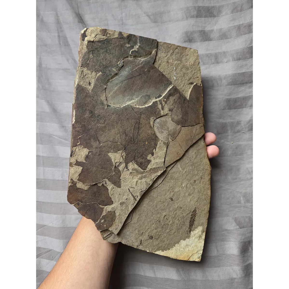 Here we have a large museum quality plate, a forest floor of leaf fossil leaves and plant material from the McAbee fossil beds of British Columbia, Canada. Both sides contain a litter of various plants and the display side even contains a very rare fossilized flower! The Tranquille Shale of southern British Columbia was formed during the Eocene, about 50 million years ago as diatoms in the lake bloomed and died in an ancient lake covering the region, fossils were preserved in the lakebed in accumulating fine layers of silt. In 2012 the McAbee Fossil Bed was acquired by the Canadian government and declared a Canadian Heritage Site, so this material is scarce and no additional material will be coming to the market from the site. Heres your opportunity to own a museum quality and aesthetic plant plate from a rare locality that is centerpiece worthy!