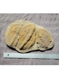 Here is an all natural and authentic triple Cambropallas trilobite fossil plate from the Cambrian deposits of the Anti-Atlas Mountains of Morocco. Being that this is the most commonly fabricated/faked trilobite species this is a great opportunity to own a real one without any worry of it being a fake/heavily fabricated which the majority of them offered are, this one only has minor restoration a few small areas. A great specimen to add to your trilobite collection.