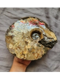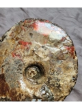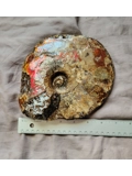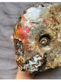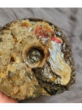 Here is a stunning red ammolite ammonite placenticeras fossil from Alberta, Canada. It has quite a bit of stunning red flashes that with the right light pictures could not do justice. Even has some white crystaline interrior revealed, which is very unusual for these pieces. Paraloid has been applied to this fossil to protect the exterior. This is the same process used by museums to preserve fossils. To watch a video to get the best idea of the stunning and beautiful red color flashes this specimen has send me an email to receive it. Not even video or photos can do justice to how it looks in hand under some good natural lighting. Priced at a bargain for a whole shell compared to other options, these types of specimens can run several grand so here is your opportunity for a more affordable yet stunning specimen.