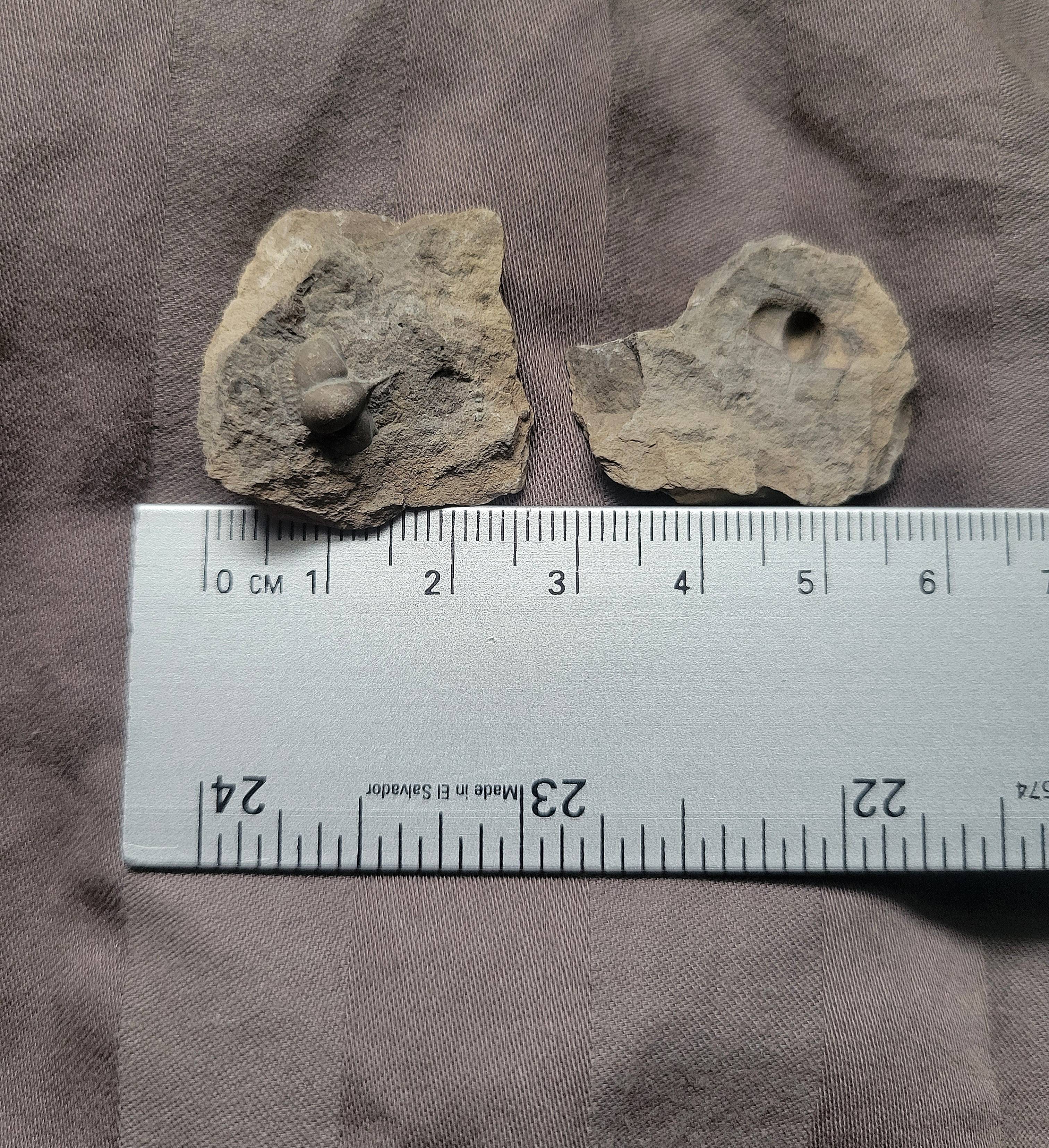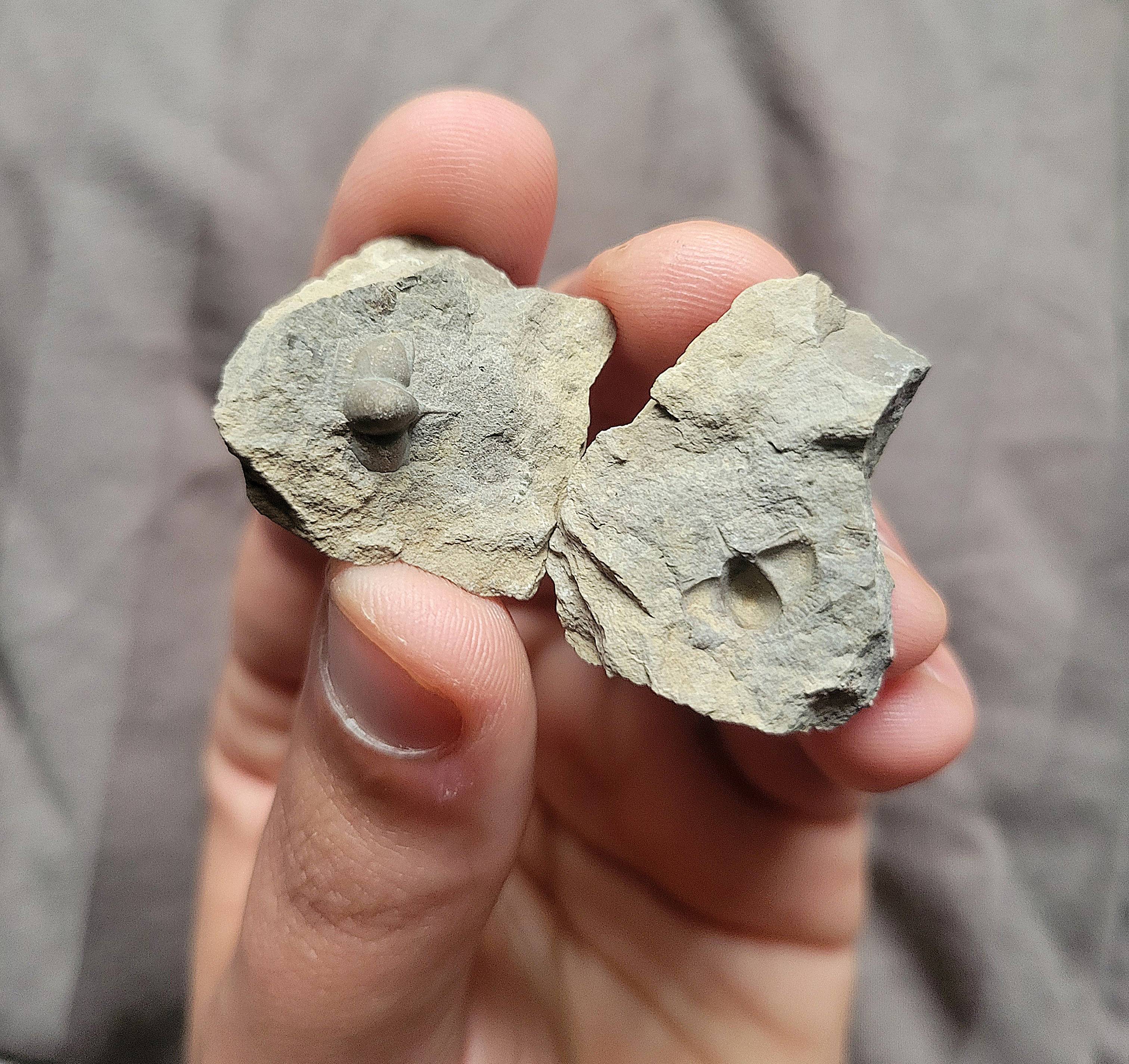 Here is a nice rare Cryptolithus trilobite split with both positive/negative sides that was found in Quebec, Canada from the Ordovician Neuville Formation.