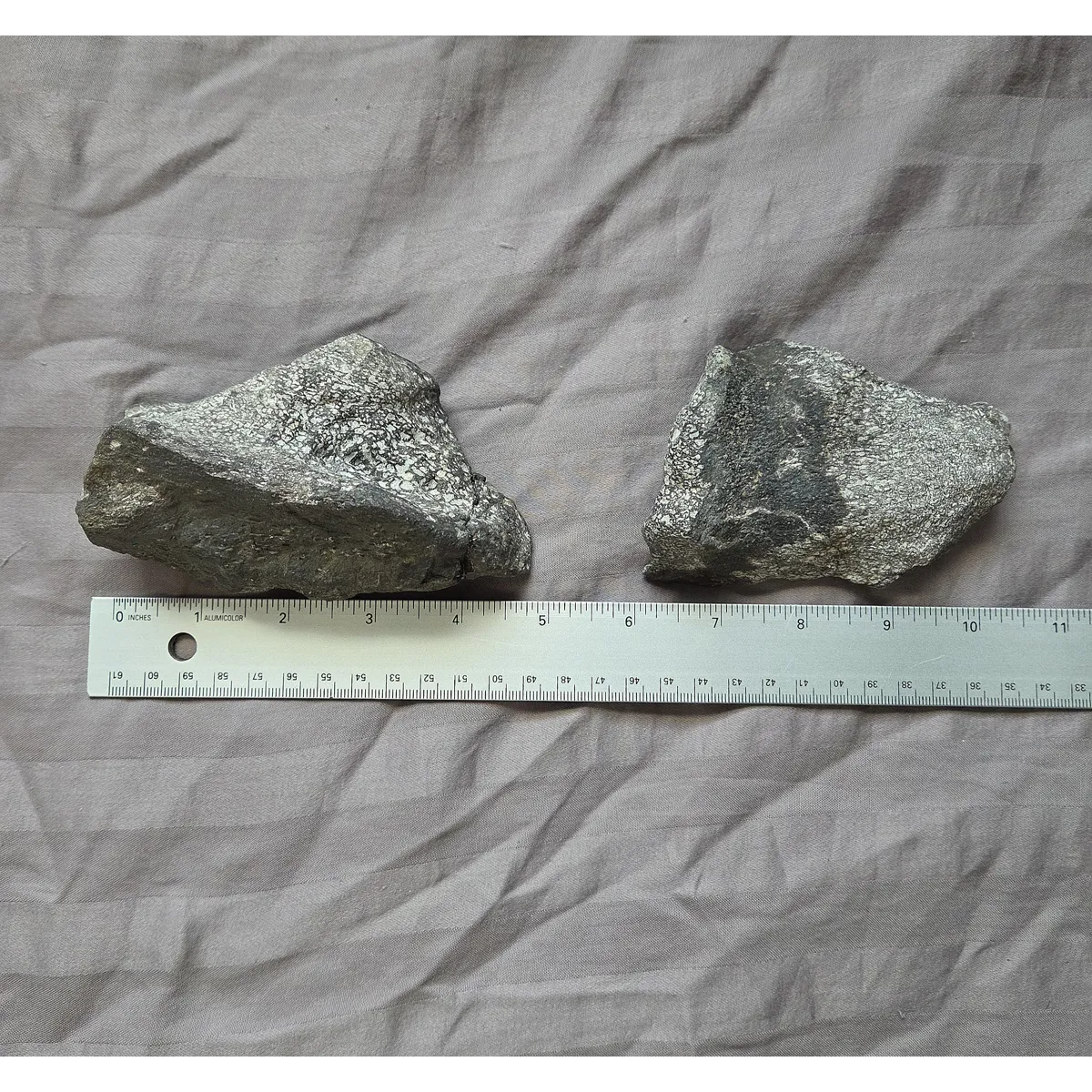Here is a set of two chunks of sacrum bone from a large hadrosaur sp. (Likely Hypacrosaurus). It was found in the Cretaceous aged Two Medicine Formation of Pondera County, Montana. Smaller bone has a glue repair. Found together and a affordable examples of hadrosaurus bone from this formation, makes a great gift!