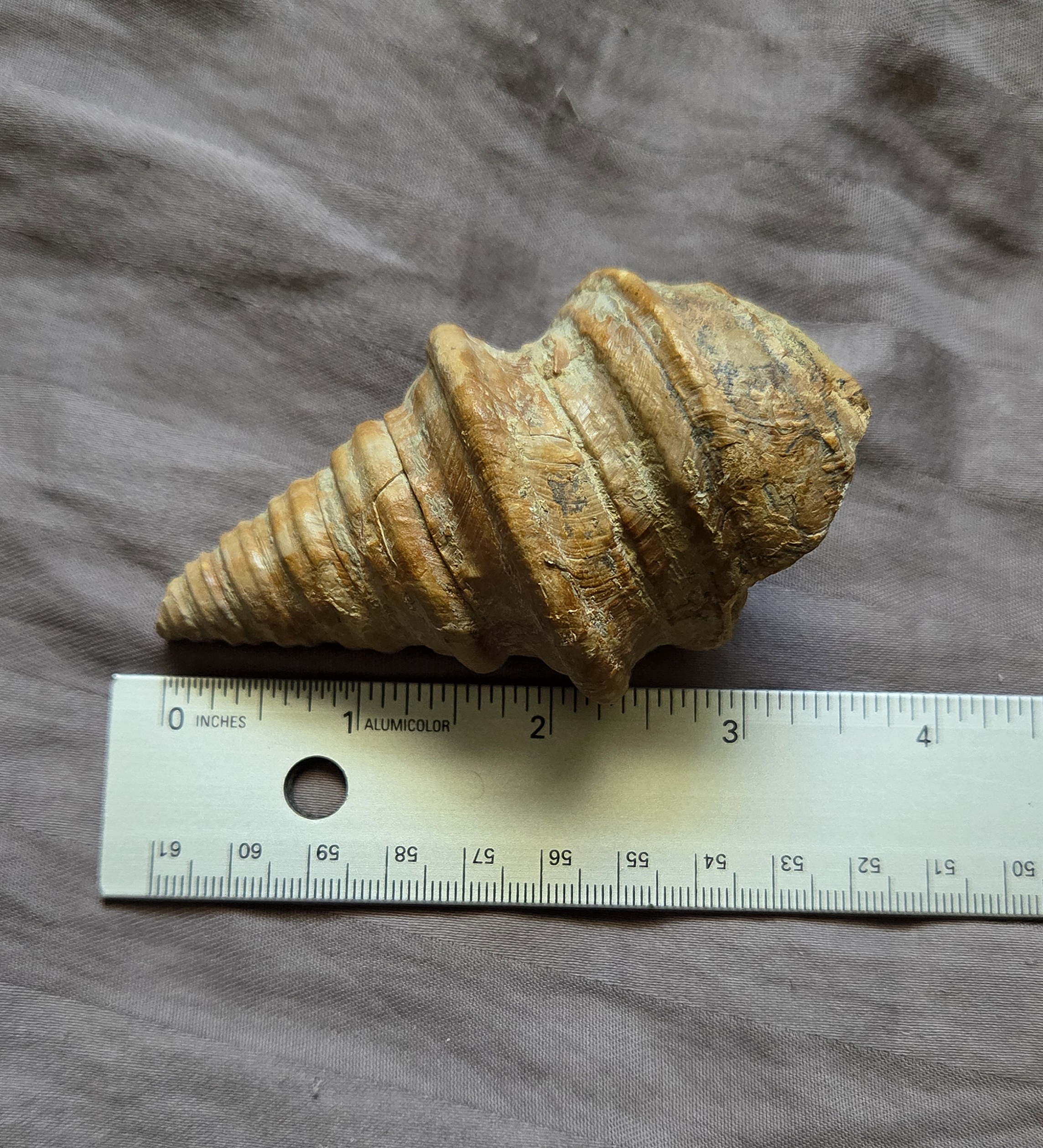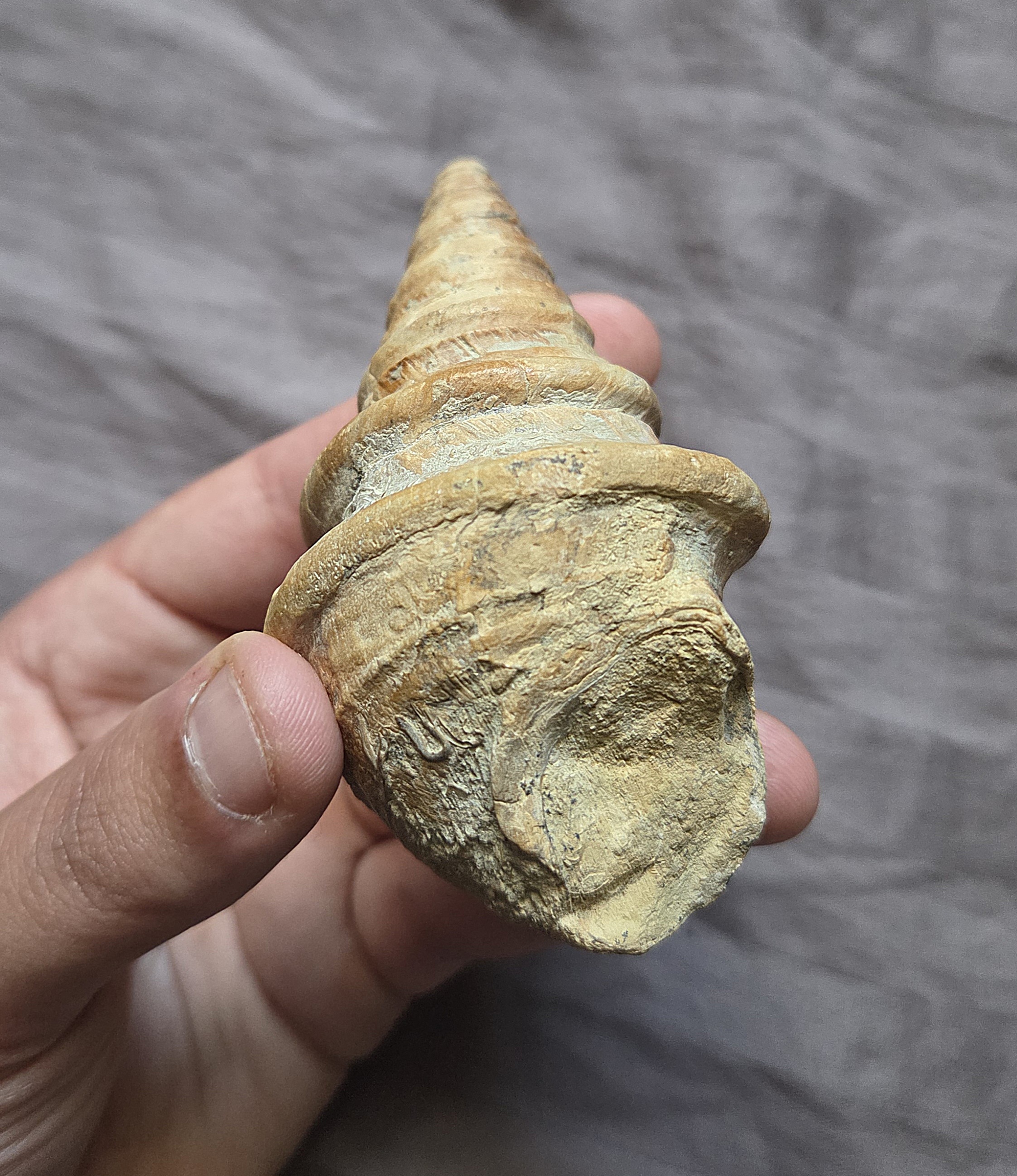 Here is a large beautifully detailed Gymnentone pizcuetai gastropod shell fossil from the Late Cretaceous deposits of a Clay Quarry near Cervera del Maestre, Castellon Province, Spain. This specimen is beautifully prepared and detailed. Making a great addition or gift for the sea shell/fossil shell collector.