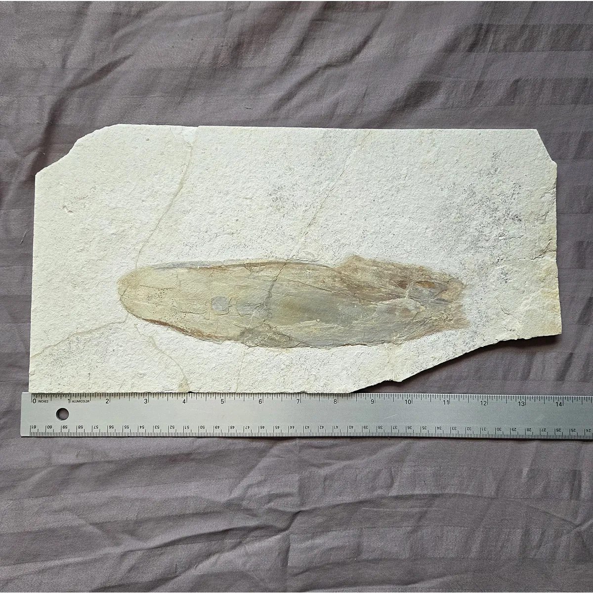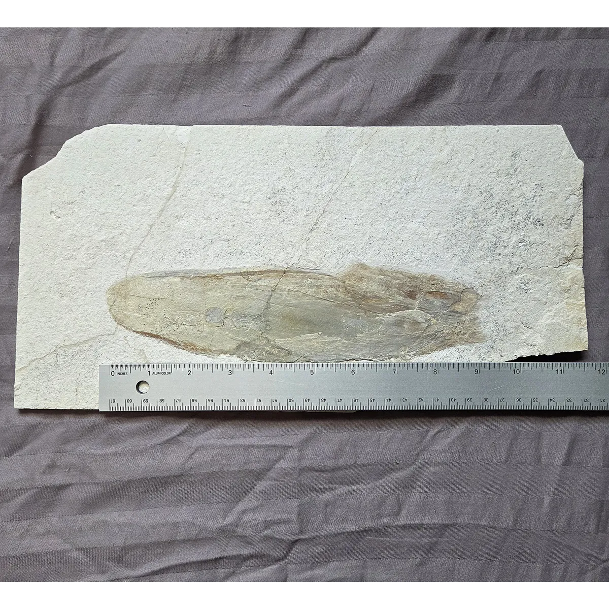 Here is a huge and nice specimen of a Jurassic aged fossil squid known as Plesioteuthis Prisca from the famous Solnhofen limestone, which is a Lagerstätte in Germany that offers amazing preservation of Upper Jurassic fossils. It is where one of the most famous fossils of all time, Archaeopteryx was found! Larged sized squid fossils are not commonly offered from this famous locality. Also this specimen is free from having carved false tentacles/body or having them falsely painted on unlike some other squid fossils I have seen here. So heres your opportunity to own a nice and huge specimen for your collection at a great price!