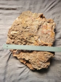 Here is a very cool piece! A giant sized partial skeleton in a nice size chunk of matrix of a fossilized Trimerorhachis. This fossil was found in the Permian age (280 million year old) Ryan Formation near Waurika Oklahoma.
