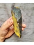 Here is a nice quality dark thick chunk of leg bone from a large adult Tyrannosaurus Rex. This piece was found in the Hell Creek Formation of Carter County, Montana. A great and hefty piece to hold in hand of dark chocolate colored Tyrannosaurus Rex! The remaining dirt can even be prepped off to reveal more of the stunning dark preservation if desired.