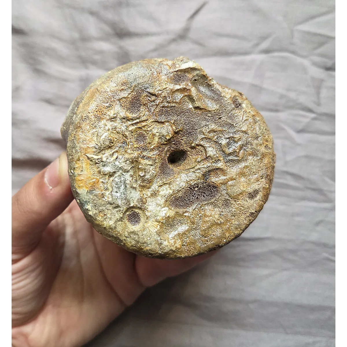 Here is a rare large Pliosaur sp. vertebra bone. This bone was found in the Jurassic Kimmeridge Clay, dredged from the smallmouth sands of Weymouth Harbour in Dorest, United Kingdom. Difficult to determine the exact species of Pliosaur from this specimen but it surely belonged to a large animal. Here is your chance to own a vertebra from the beast known as the Tyrannosaurus Rex/T-Rex of the sea as one of the most menacing and largest type of sea monsters in history!