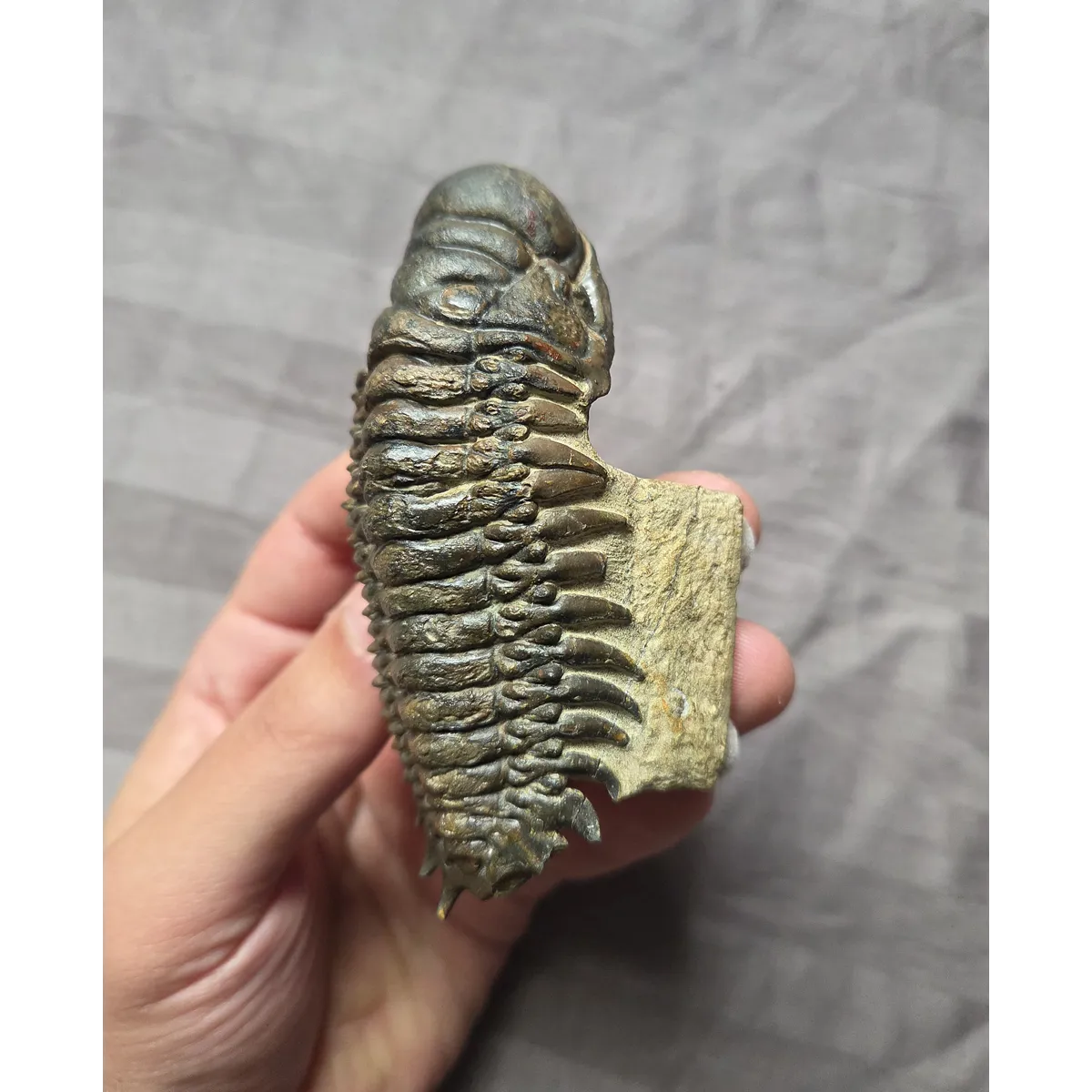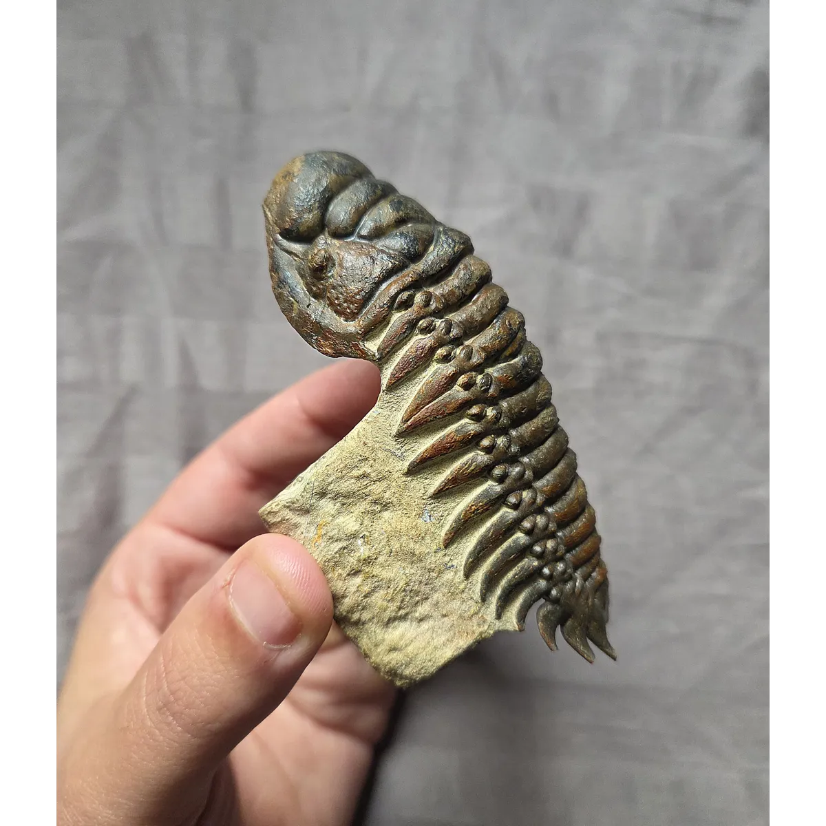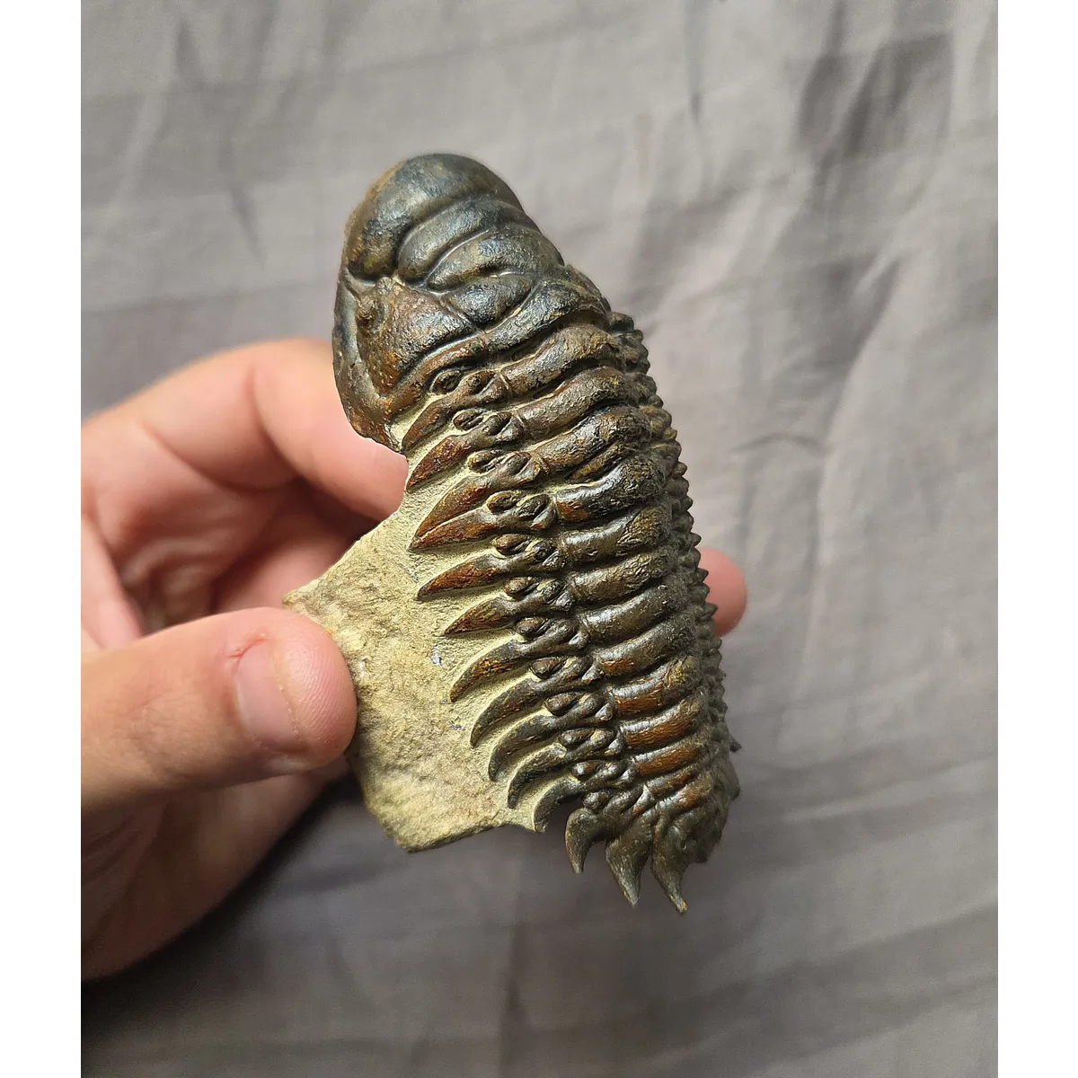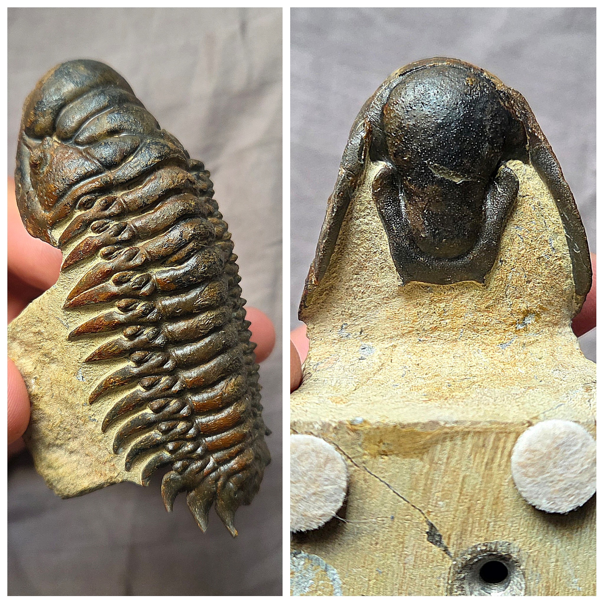 Here is an all natural and authentic magnificent example of a Crotalocephalus trilobite fossil from the devonian aged deposits of the of Morocco. This specimen even has the hypostome (mouth plate) preped out with outstanding detail! While missing the tip of the two tail points this specimen is a magnificent example of this trilobite and the mouth detail alone makes it so. Makes a great gift for the trilobite and fossil collector!