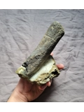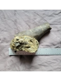Heres an awesome matrix display piece of a fossil hadrosaur metatarsal bone (Likely Hypacrosaurus) jaw found in the Late Cretaceous 74 million year old Two Medicine Formation of Pondera County, Montana. This sturdy fossil bone prepped in its host formation matrix makes it a wonderful museum level display example of a hadrosaurus metatarsal that can stand up on its own.