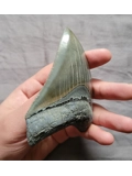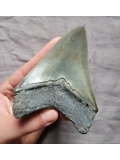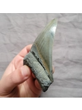 Here we have a nice quality and glossy almost mirror-like at times megalodon shark tooth fossil found near Savanah, Georgia. All natural with no repairs or restoration.
