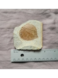 Here is a colorful fossil leaf (Zizyphoides flabellum) from the Paleocene aged Fort Union Formation near Glendive, Montana. The preservation like the color of fall leaves, contrasts well against the shale, and many of the details in the leaf can be seen in good relief.