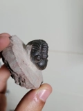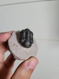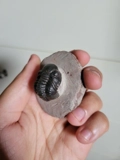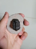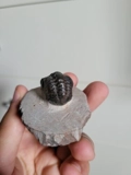 This is a nice and small phacops trilobite. The limestone around it has been removed and the specimen prepared so that it looks like it is about to crawl off of the rock.
