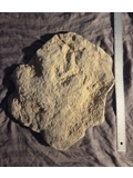 Here offered is one of the most notoriously difficult and rarest dinosaurs species to obtain, and that is anything from Acrocanthosaurus Atikensis. This is a fossil footprint from a Acrocanthosaurus that was found in the Glen Rose Formation of the area of Somerville County, Texas which is famous for producing the footprints attributed to Acrocanthosaurus. The footprint is a positive and is more 3d in person than it appears in the photos. The foot by itself measures somewhere around 14x14 inches wide and on a very heavy 62 lbs slab. Seasoned collectors will know how extremely difficult to near impossible it is to obtain fossils from Acrocanthosaurus as they rarely ever and almost always never make it to the market, and even on the blue moon occasion when they do are snatched up within seconds. While in the area these footprints aren't uncommon what makes this an extremely rare opportunity is one, all the tracks are usually found on either only private or uncollectible land. Second the footprints are typically to enormous or in situ to extract let alone be possible to actually ship out. So for those who want to own an Acrocanthosaurus fossil in here is one of the once in a lifetime opportunities to obtain one in the public market, do not miss out.