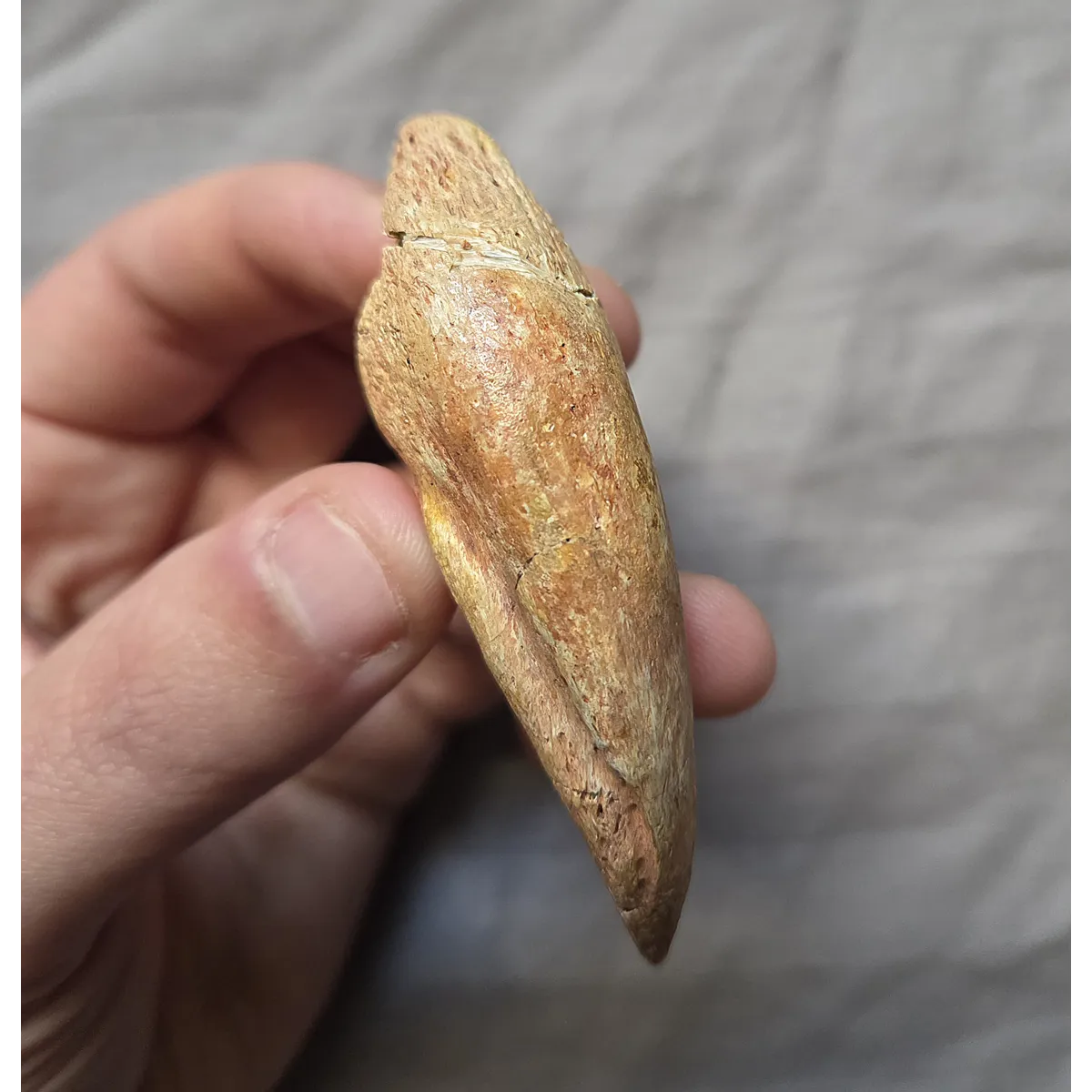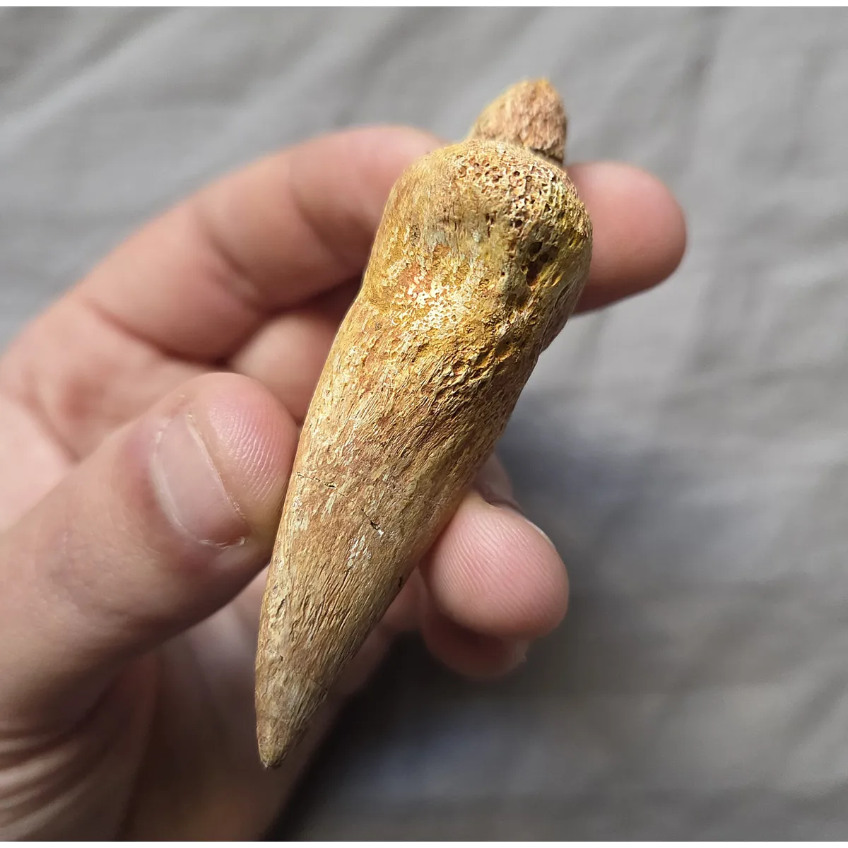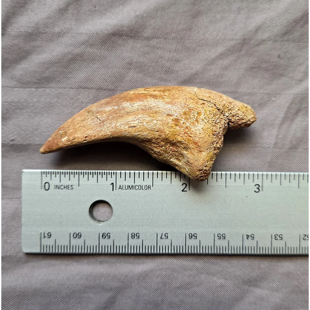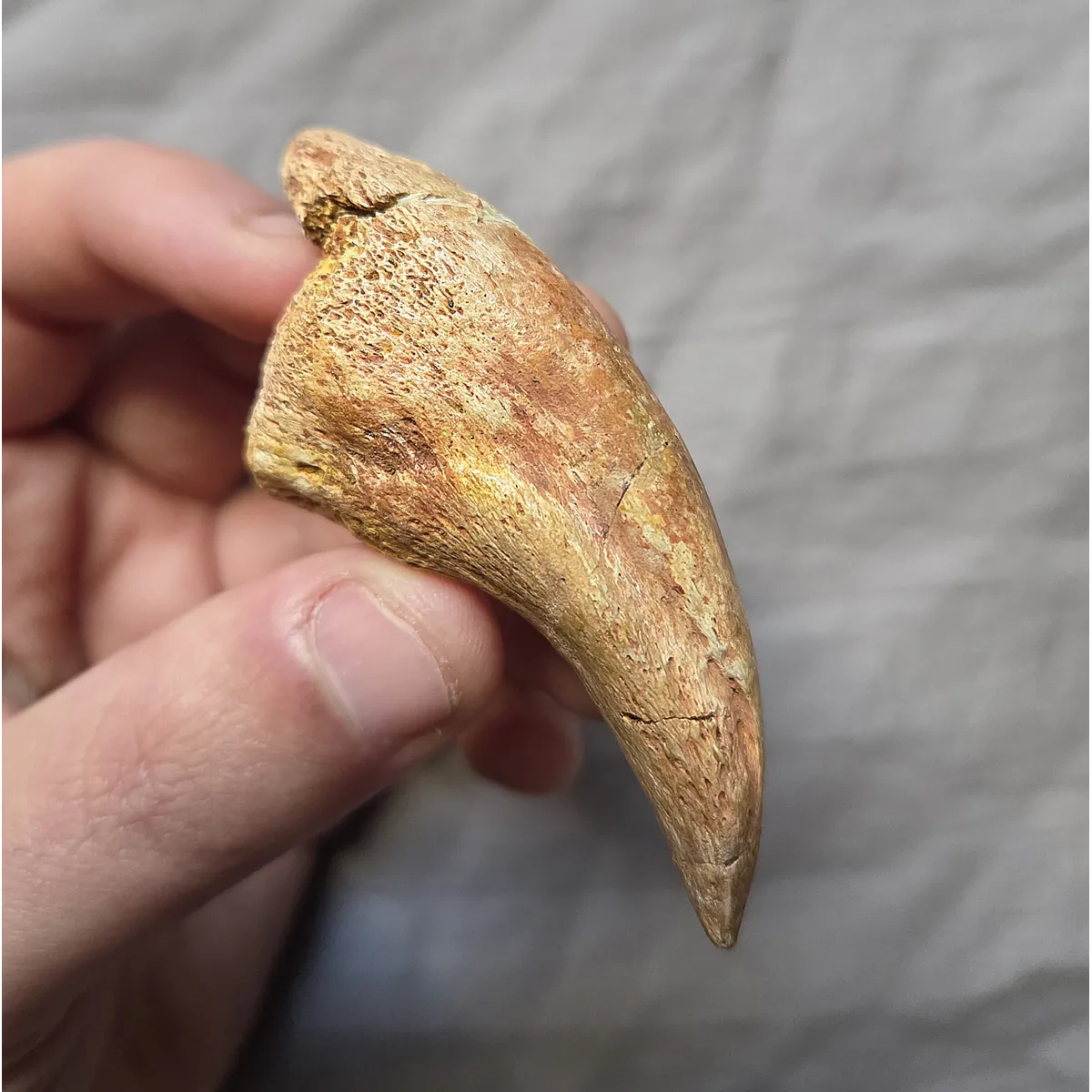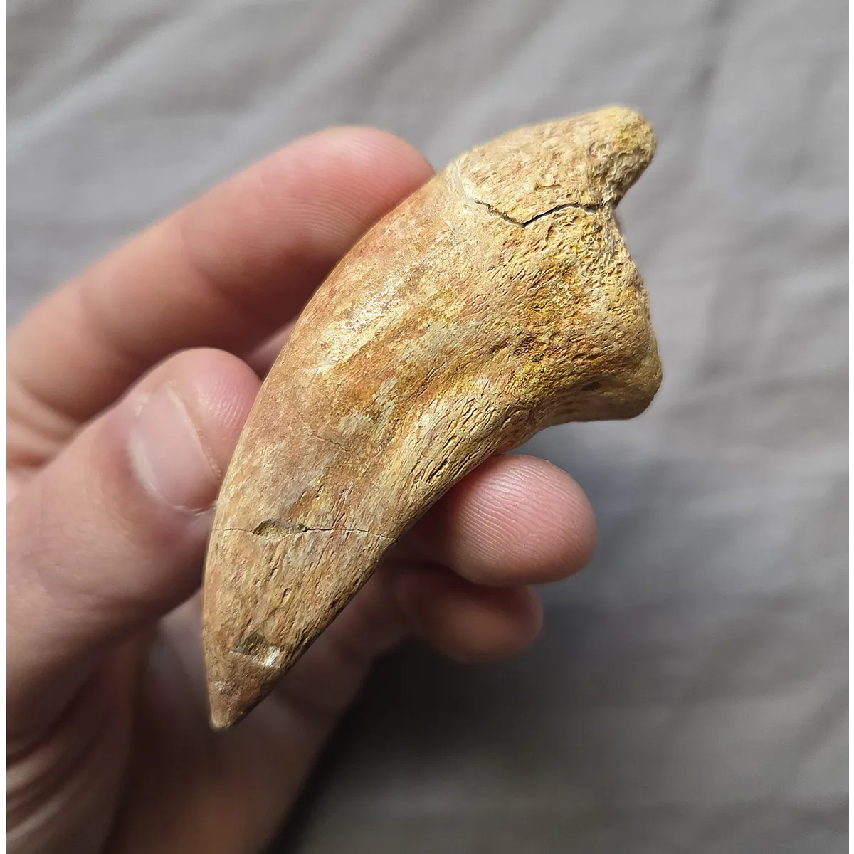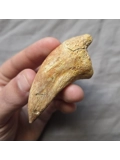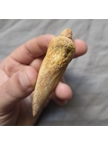 Now heres why this specimen gets the ultra rare label. While you see Spinosaurus claws decently often enough and 9.8/10 times your spending 100s to 1000s buying a fake and carved one as Spinosaurus claws are the top faked/fabricated fossil in the world next to morrocan trilobites, and some especially these days look so dam close to the real thing you can't even tell from photos. Here offered is the exception and one type you do not see and this is an actual authentic specimen specimen of Carcharodontosaurus claw! This specimen was found in cretaceous Taouz, Kem Kem Beds, of Morocco. This foot claw has one repair on the top and the rest is beautiful all natural bone free of fabrication/restoration. Being I know that Carcharodontosaurus material has not been properly described, I had to look to other Carcharodontosaurids for comparitive material and this specimen is pretty much a clear match in all aspects from what Ive seen. I will save you one of the most difficult and frustrating hassles in the fossil collecting world, so heres your opportunity to get one of the very few worry free actual authentic Moroccan fossil claws out there at a good price and from a rarely seen animal to boot!
