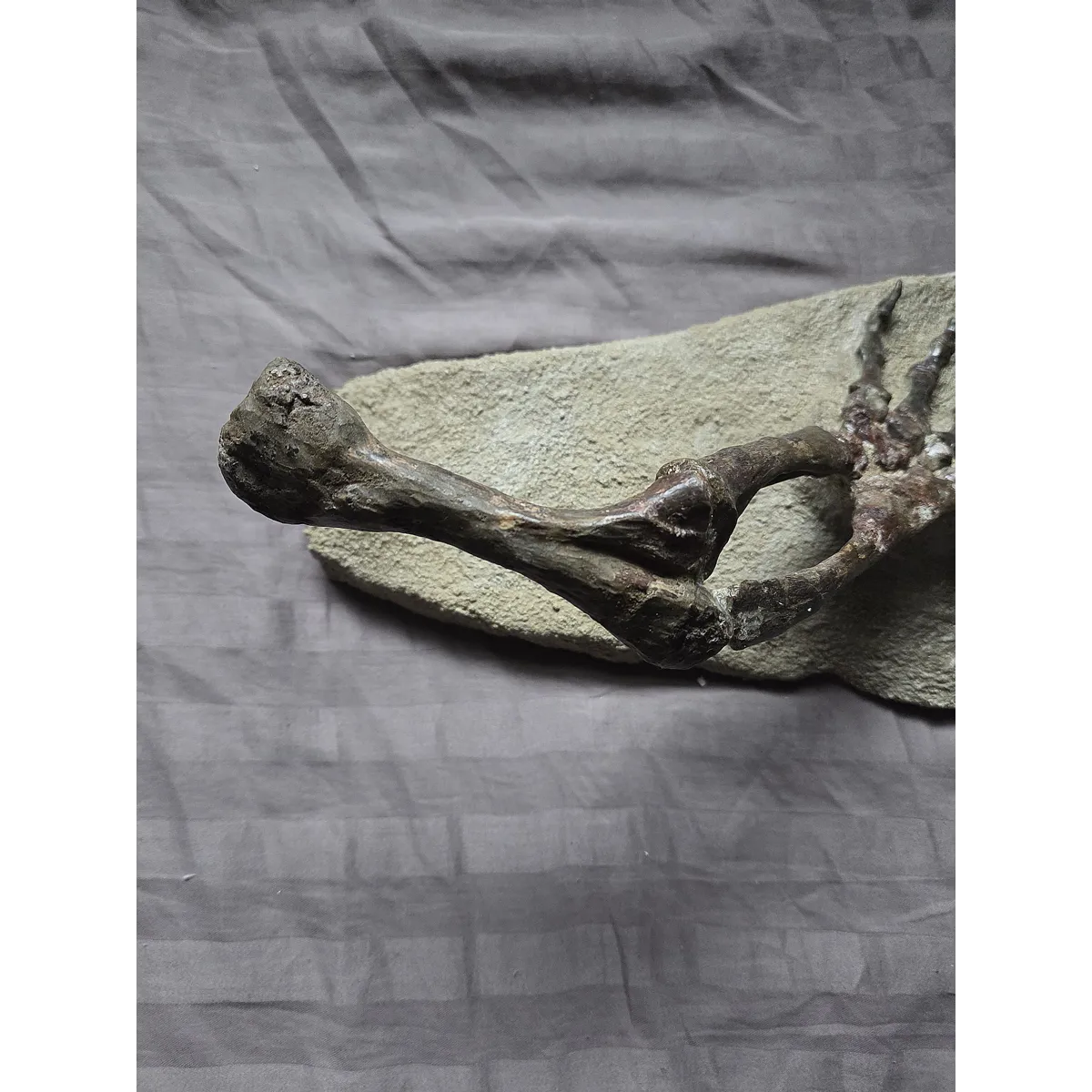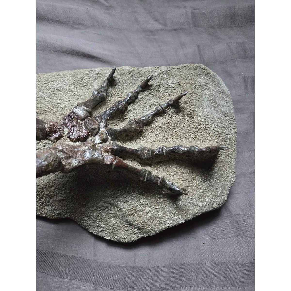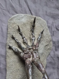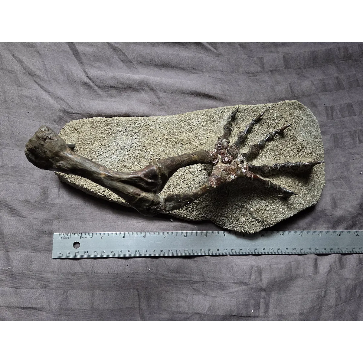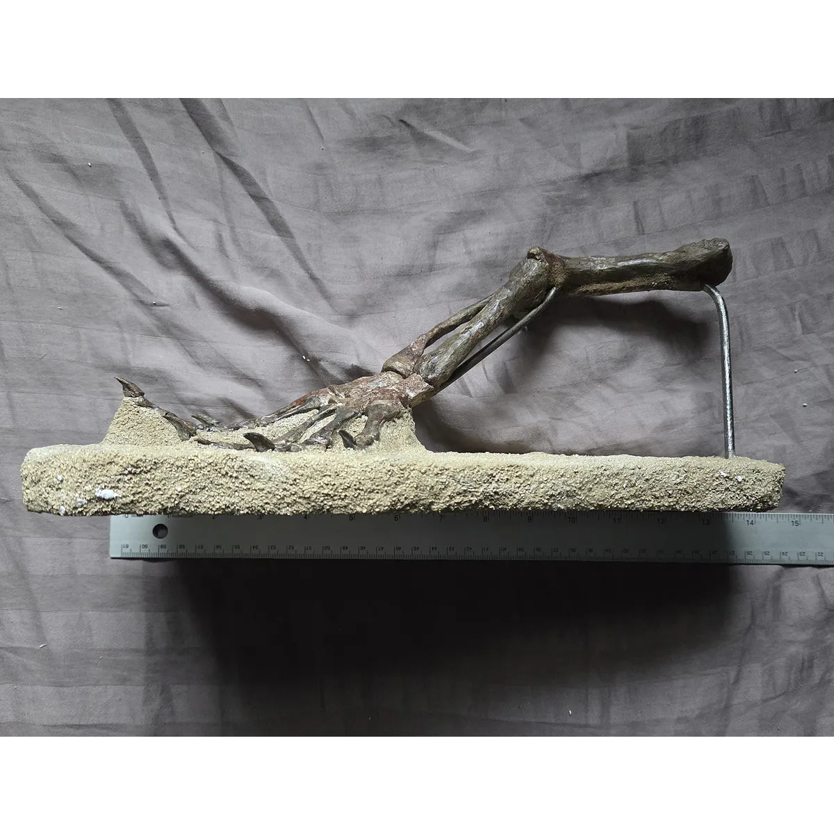 Now heres a spectacular offering that is truely a one of a kind fossil. A complete and mounted museum style articulated foot and leg fossil bones from the famous Dimetrodon! This fossil as it is professionally affixed to a matrix piece with metal bars to keep it sturdy and in place so this one you can impressively display proudly in your collection without worry! This fossil was found in the Permian age (280 million year old) Ryan Formation near Waurika Oklahoma and has some museum style restoration with the plate measuring approximately 13Lx6.5Wx5.5H. Dimetrodon is famously mistaken to be a dinosaur but it is actually a mammal like reptile known as a synapsid. Dimetrodon is famous for its sail back, but this is the leg that moved the beast and gave it the locomotion to track, chase, and take down just about any prey! Its easy to imagine it stepping and running upon a permain landscape. This is one of those special pieces that truly elevates a simple collection to a museum worthy display! So heres your opportunity to add such a piece and it pairs beautifully with my avaliable sail spines.