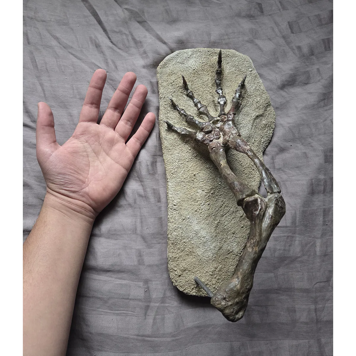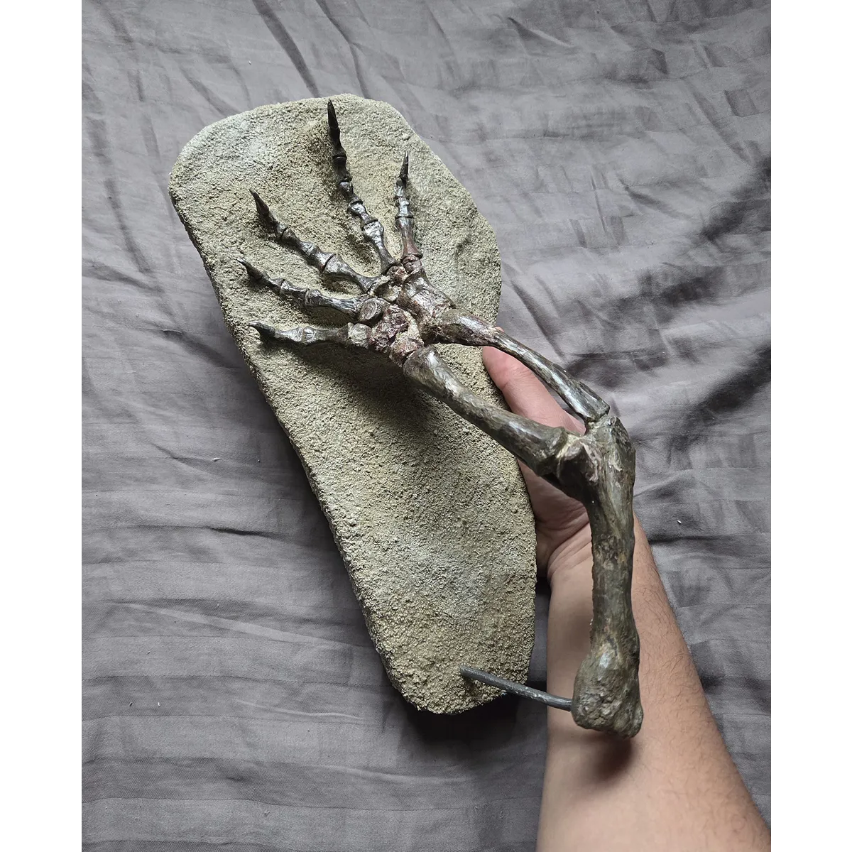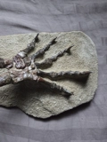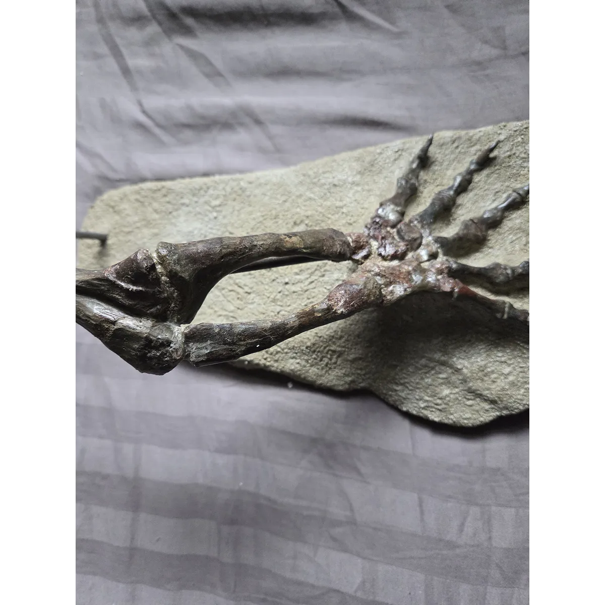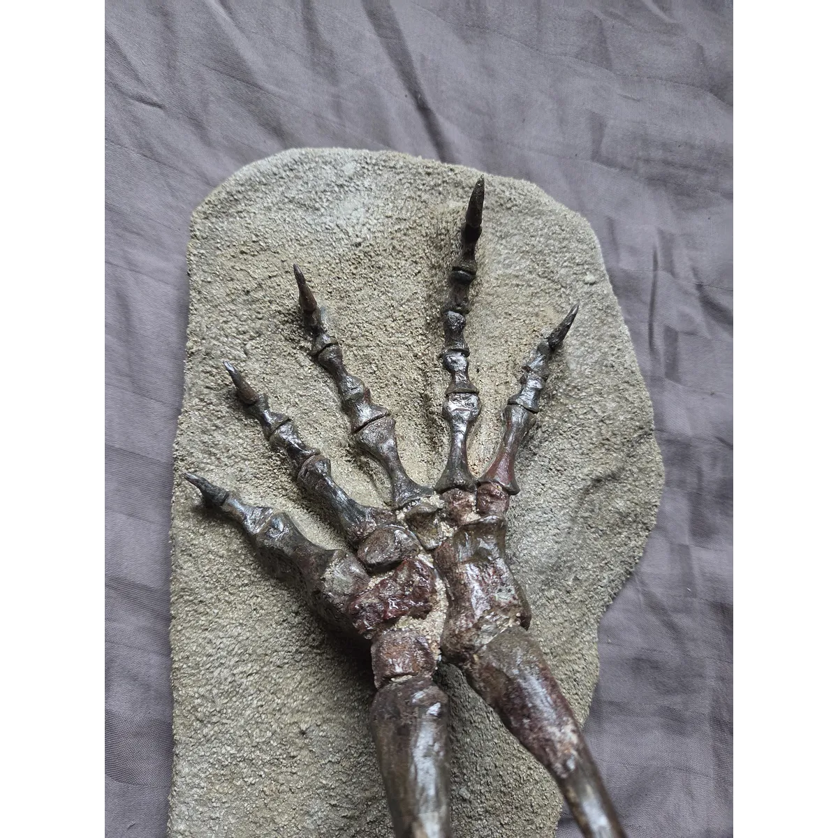 Now heres a spectacular offering that is truely a one of a kind fossil. A complete and mounted museum style articulated foot and leg fossil bones from the famous Dimetrodon! This fossil as it is professionally affixed to a matrix piece with metal bars to keep it sturdy and in place so this one you can impressively display proudly in your collection without worry! This fossil was found in the Permian age (280 million year old) Ryan Formation near Waurika Oklahoma and has some museum style restoration with the plate measuring approximately 13Lx6.5Wx5.5H. Dimetrodon is famously mistaken to be a dinosaur but it is actually a mammal like reptile known as a synapsid. Dimetrodon is famous for its sail back, but this is the leg that moved the beast and gave it the locomotion to track, chase, and take down just about any prey! Its easy to imagine it stepping and running upon a permain landscape. This is one of those special pieces that truly elevates a simple collection to a museum worthy display! So heres your opportunity to add such a piece and it pairs beautifully with my avaliable sail spines.