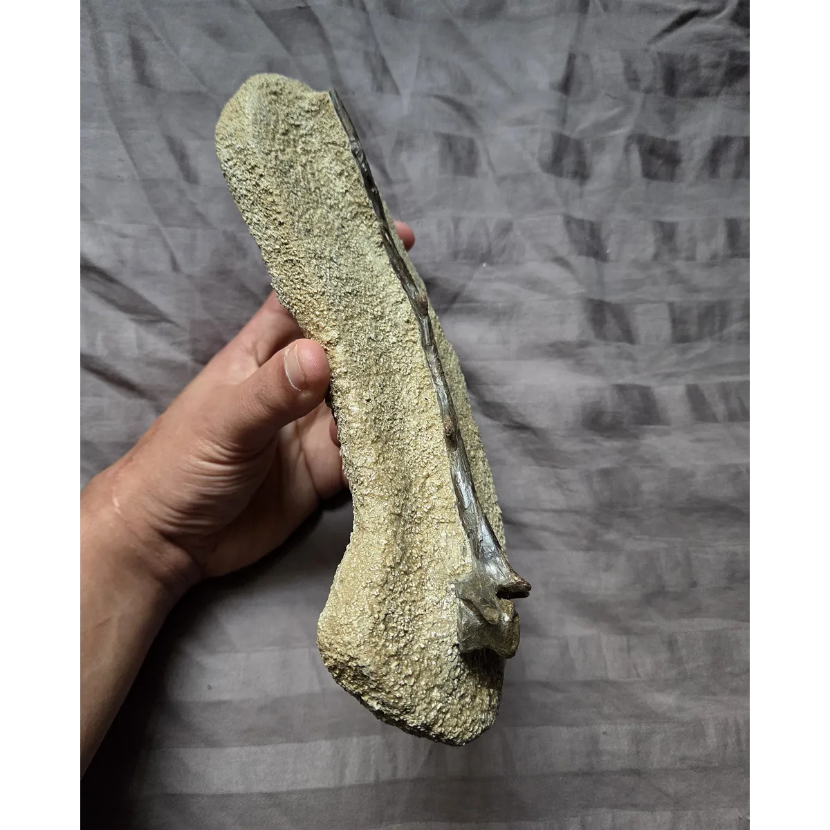 Now heres a spectacular offering that is truely a one of a kind fossil! Now let me explain why you will not want to miss out on this specimen. Not only is this a vertebra with a complete sail spine from one of the contemporaries of the famous Dimetrodon known as the Edaphosaurus, spines from experience are always ULTRA FRAGILE and they always BREAK for me in shipping and handling. This particular piece fixes the biggest issue with this kind of fossil as it is affixed to a matrix piece meaning now there is no worry about having a spine that always breaks super easily when moving it around or having it arrive to you in broken pieces that are difficult to repair back. This one you can impressively display proudly in your collection without worry! This fossil was found in the Permian age (280 million year old) Ryan Formation near Waurika Oklahoma and has only 1-2% restoration. The presence of the nodes on the spine is what distinguishes this from a spine section of Dimetrodon.