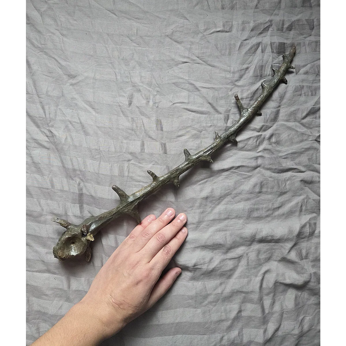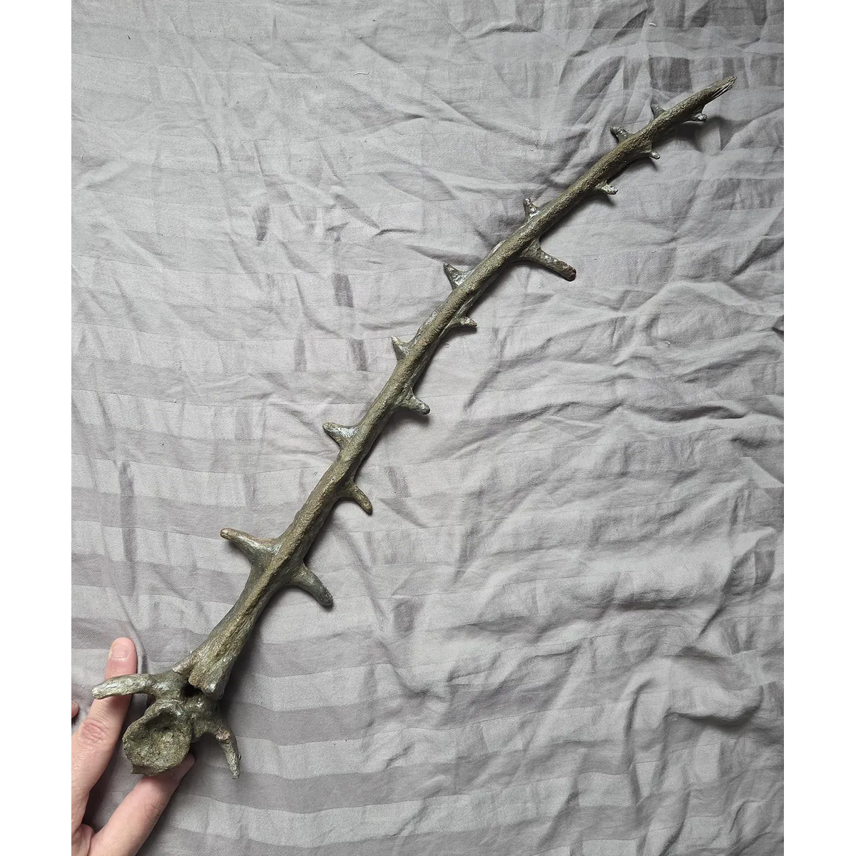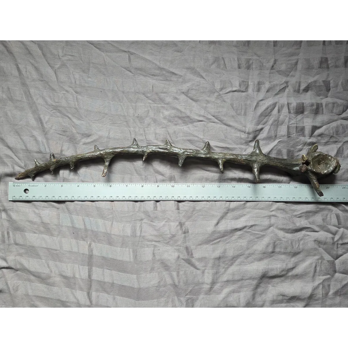 Many do not know that Edaphosaurus is an important fossil as it is one of the earliest known large plant-eating amniote tetrapods meaning four legged and land living vertebrates. A number of other synapsids from the same time period also have tall dorsal sails, most famously the large apex predator Dimetrodon. However, the sail spine on Edaphosaurus is different in shape and morphology. Dimetrodon's is straighter and comes to more of a point at the center. More important Edaphosaurus was certainly a prey item on the Dimetrodons menu. Having this on display with a Dimetrodon spine which I do also offer would be a treat for any fossil collector/museum who wants a killer permain display. So heres your chance to own or gift an impressive and notable permain fossil bone!