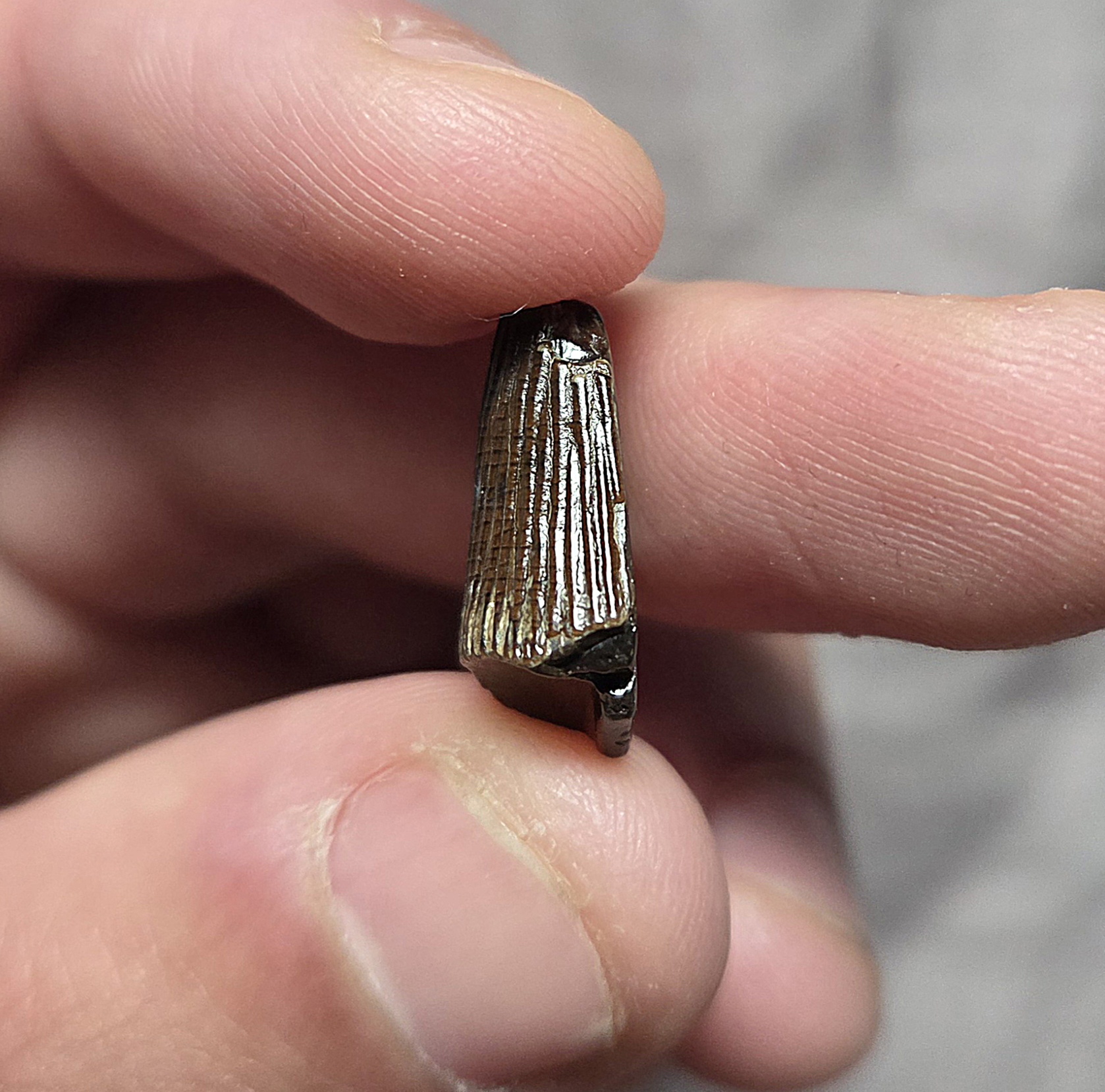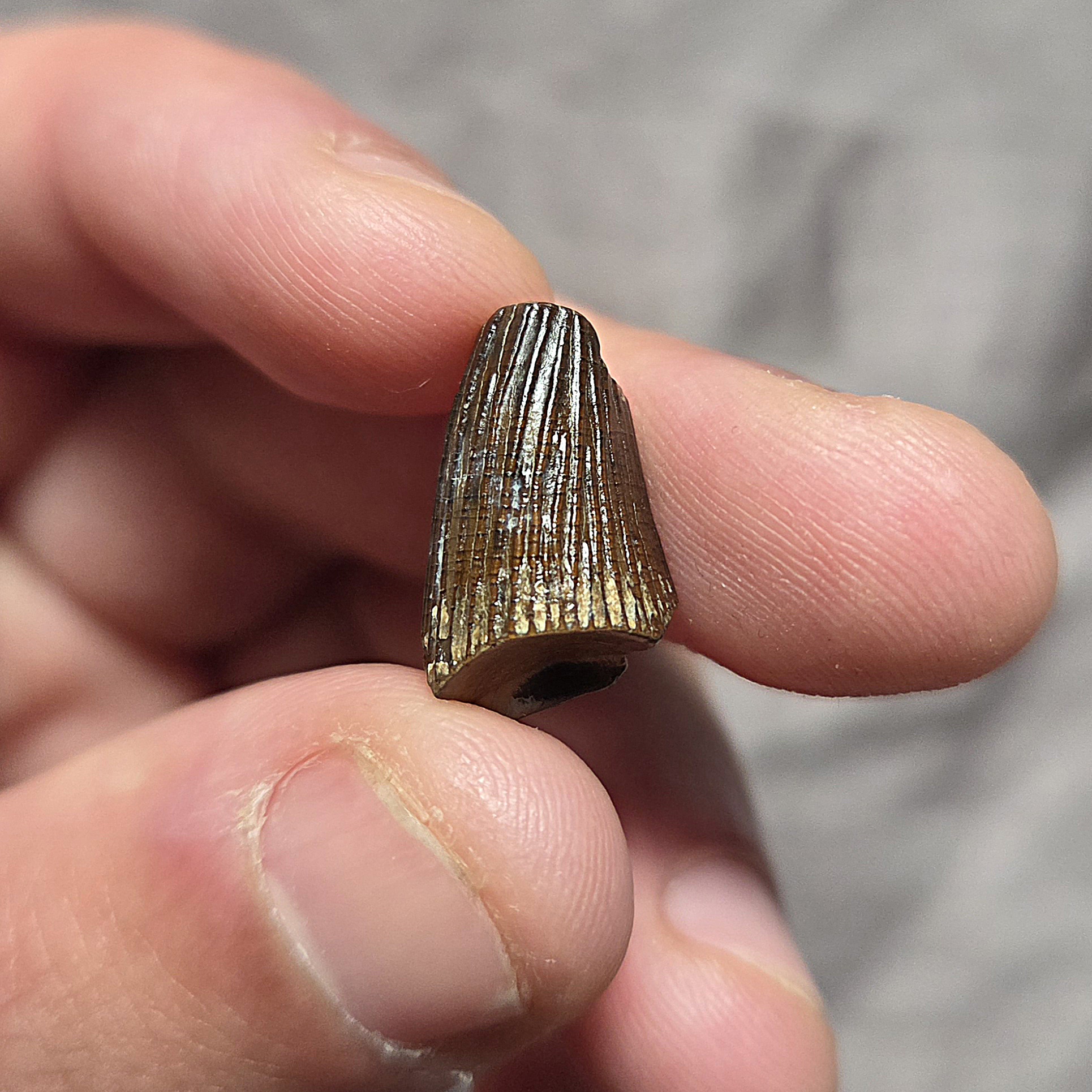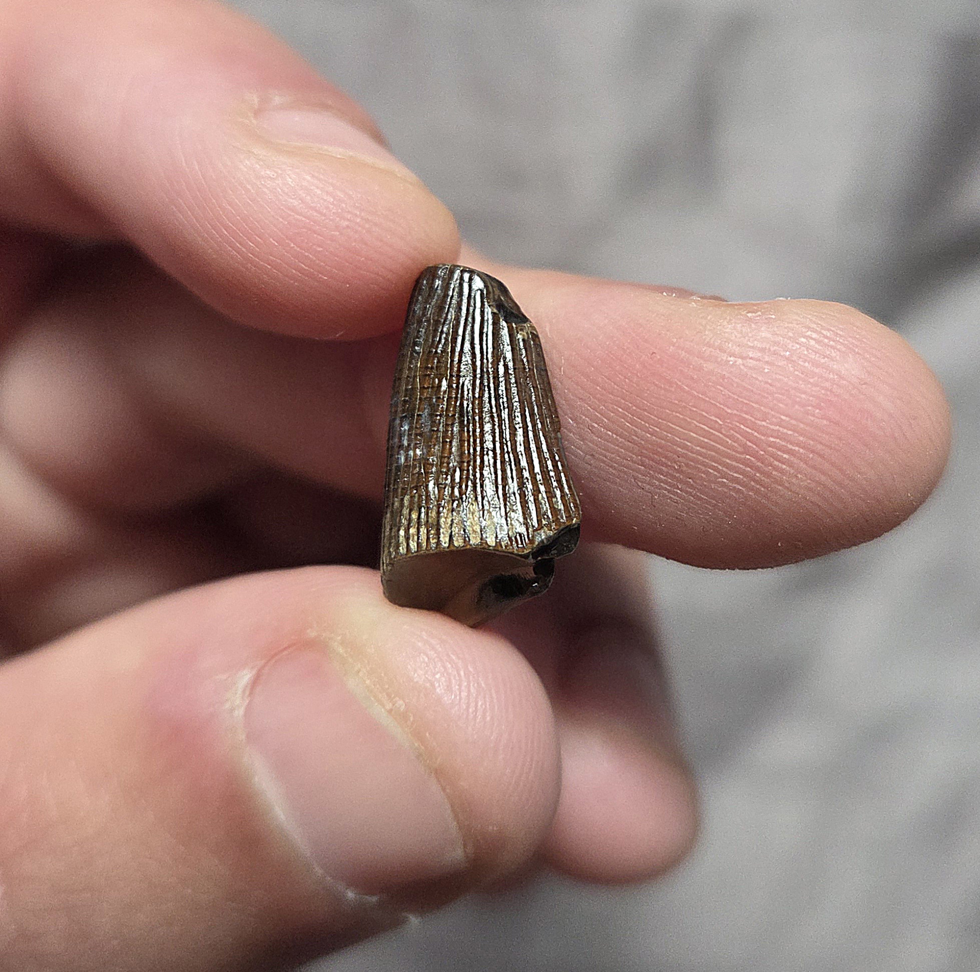 Here is one of the most sought fossils and part of the Pliosaur, the mighty tooth. This partial tooth is the first I've ever seen of its kind offered from a Cretaceous locality in the Greenhorn Formation of South Dakota. This tooth is from the Pliosaur Brachauchensis sp. This tooth came from a type of animal very similar to the likes Liopluerodon and it surely belonged to a ferocious animal. These teeth rarely come to market and are scooped up super fast when they become available. Pliosaur teeth are evaluated about the same as Trex teeth so heres is your chance own a partial tooth from an even rarer beast at a reasonable price. From the beast known as the Tyrannosaurus Rex/T-Rex of the sea as one of the most menacing and largest type of sea monsters in history! Offered from a locality that has not become available in the market, so I will likely never be able to obtain another.