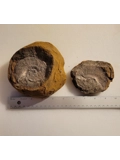 Here is a Scaphites sp. ammonite in a concretion from a very rare unique site. Unlike the Pierre Shale and Fox Hills Formation material these ammonites are found in spilt concretions and contain a very unique style of Iridescence, with pink, green, and sometimes blue sparkling speckled flashes. To get an idea of the true Iridescence these unique pieces have, please watch the video to see the condition/extent of the flashes for each one I will be listing (contact me by email with the sku or picture of the specimen you are interested in to receive the video) will always look better in person. These come from a very small privately owned area in South Dakota along the Cheyenne River Indian Reservation, The site/source is no longer accessible nor is there a similar one like this in the region. Handle with care and do not directly touch the shell Iridescence or you risk flaking it off. You will receive the specimens pictured. Don't miss out on these unique gem Scaphites display pieces, as when I run out there will be no more.