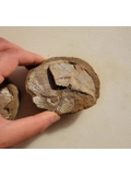 Here is a Scaphites sp. ammonite in a concretion from a very rare unique site. Unlike the Pierre Shale and Fox Hills Formation material these ammonites are found in spilt concretions and contain a very unique style of Iridescence, with pink, green, and sometimes blue sparkling speckled flashes. To get an idea of the true Iridescence these unique pieces have, please watch the video to see the condition/extent of the flashes for each one I will be listing (contact me by email with the sku or picture of the specimen you are interested in to receive the video) will always look better in person. These come from a very small privately owned area in South Dakota along the Cheyenne River Indian Reservation, The site/source is no longer accessible nor is there a similar one like this in the region. Handle with care and do not directly touch the shell Iridescence or you risk flaking it off. You will receive the specimens pictured. Don't miss out on these unique gem Scaphites display pieces, as when I run out there will be no more.