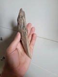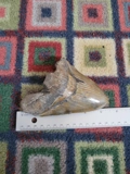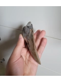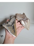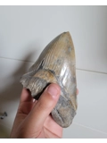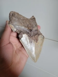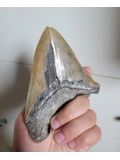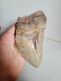 These are Megalodon shark tooth found while scuba diving in a dark, black water river in South Carolina. This is a meg from a famous "Gold Site" in South Carolina. This specific area is one of the most dangerous spots in the world to dive. Deep, dark, fast flowing water with very low visibility and loaded with sharks. This spot also does not produce very many gold colored teeth and the ones that we do find almost all need restoration. The teeth are usually all sharply serrated with enamel peel and/or root erosion. Only a few non-restored teeth out there from this site and most of them will have restoration. Just the way it is with this spot. This is a beautiful tooth from a very rare site that not many people will have a meg from and with a good resto job can be valued at this size around $1,000.