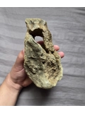Here is a very rare and large sized Panoplosaurus sp. nodosaur vertebra bone from the Cretaceous aged Two Medicine Formation of Montana. While this formation typically produces a majority hadrosaur remains every once in a while rare nodosaur remains can turn up, but from observation they seem significantly rarer than opposed to hadrosaur. While there is a small chunk missing on the back that keeps this piece at the lower price point, the display side looks great and whole looking in hand! So heres your chance at the rarer of herbivore material in the two medicine formation from a unique armored dinosaur!